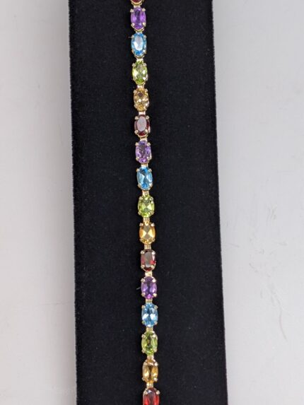 D&J Diamonds & Jewels Multi-Color Oval Gemstone Tennis Bracelet in Yellow Gold