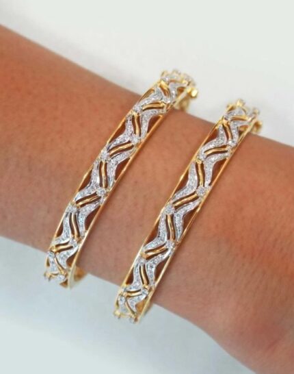 D&J Elegant Diamond Wave Bangles – Contemporary Dual-Tone Luxury Pair