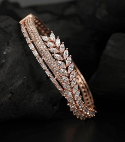 D&J Regal Leaf Marquise Crystal Cuff Bracelet – Rose Gold Finish