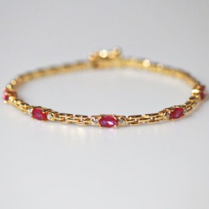 D&J Diamonds & Jewels Ruby & Diamond Delicate Chain Bracelet in Yellow Gold