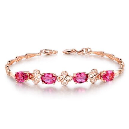 D&J Diamonds & Jewels Pink Sapphire & Diamond Infinity Link Bracelet in Rose Gold