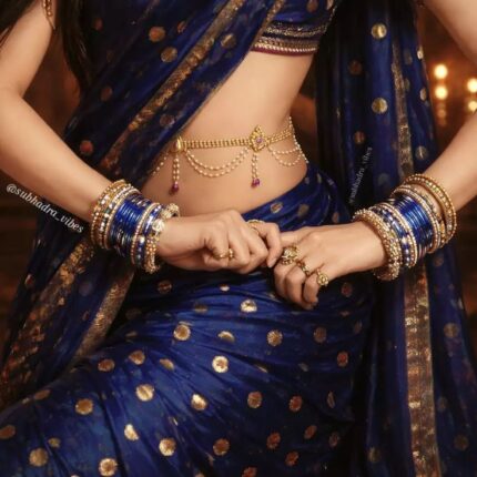 Royal Blue Enamel Diamond-Inspired Waist Chain (Kamarbandh)