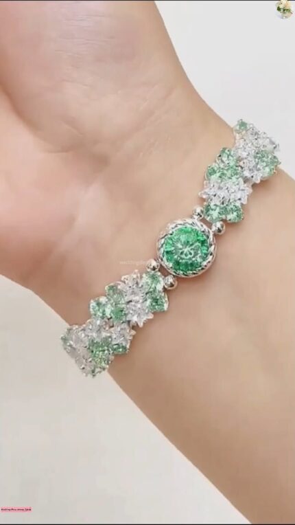 Emerald Bloom Diamond Bracelet – Luxury Green & White Stone Statement Bracelet