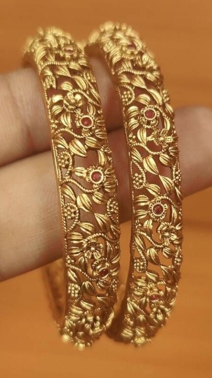 D&J Diamonds & Jewels Antique Gold Floral Carved Bridal Bangles Set for Women – Elegant Wedding Collection