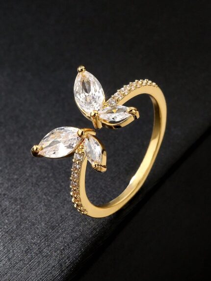 D&J Diamonds & Jewels Gold Tone Marquise Crystal Butterfly Ring – Elegant Open Designer Band for Women
