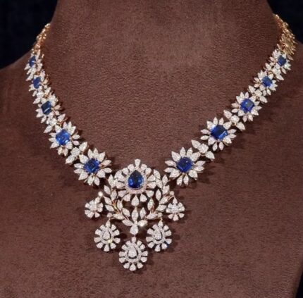 Royal Blue Teardrop Floral Diamond Necklace Set – D&J Diamonds & Jewels