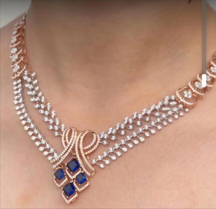 D&J Sapphire Ribbon Elegance Necklace – Rose Gold Diamond-Style Layered Statement Jewelry