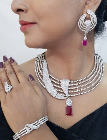 Modern Ruby Drop American Diamond Necklace Set – Luxury CZ Statement Jewelry | D&J Diamonds & Jewels