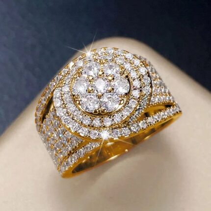 D&J Royal Diamond Cluster Ring – Gold Plated Luxury Statement Band for Women