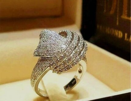 D&J Diamonds & Jewels Luxury Heart Swirl Pavé Ring – Silver Tone Statement Love Ring for Women