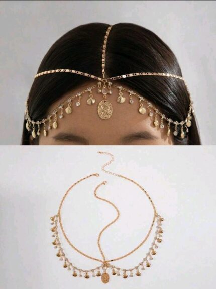 Step into timeless elegance with the D&J Celestial Cascade Diamond Forehead Headpiece, a breathtaking fusion of classic royalty and modern couture. This exquisite piece features delicate diamond-lined chains that drape gracefully across the crown and forehead, converging into a luminous teardrop centerpiece that rests elegantly at the brow.