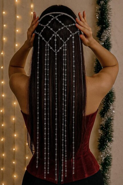 A symbol of grace, femininity, and royal charm, the Celestial Cascade Headpiece is not just jewelry—it’s a crown for the modern queen.