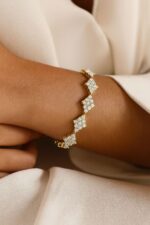 Be the first to review “D&J Diamonds & Jewels 14K Yellow Gold Diamond Cluster Link Bracelet – Geometric Statement Design” Cancel reply