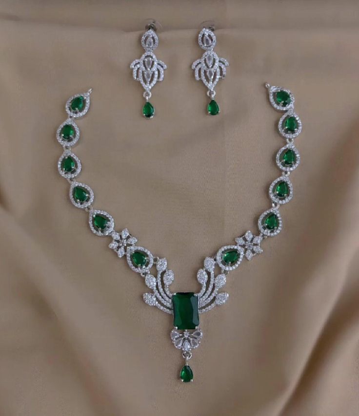 Embrace timeless sophistication with the Emerald Grace Regal Necklace Set by D&J Diamonds & Jewels — a perfect harmony of royal charm and refined brilliance.