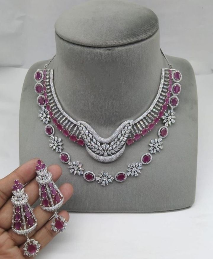 Finished in a premium white-tone setting with high-quality stone craftsmanship, this jewellery set offers both glamour and elegance for women who love refined luxury.