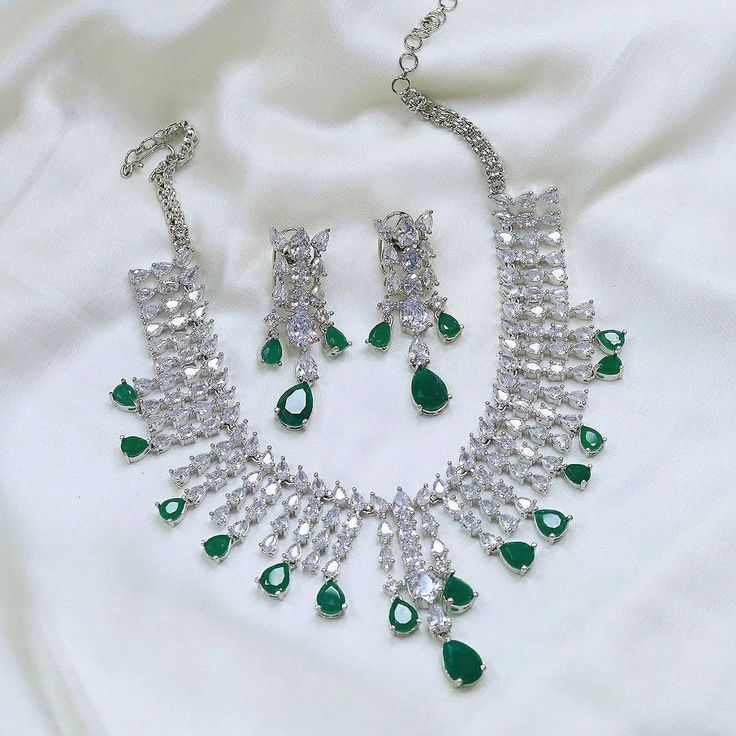 Category: Jewellery Sets Tags: American diamond necklace, cascade necklace, D&J Diamonds & Jewels, designer bridal set, elegant women accessories, emerald bridal necklace, engagement necklace, Festive Jewelry, green stone jewelry set, luxury necklace set, party wear jewelry, premium jewelry collection, silver tone jewelry, Statement Bridal Jewelry, wedding jewelry set Brand: Diamonds & Jewels