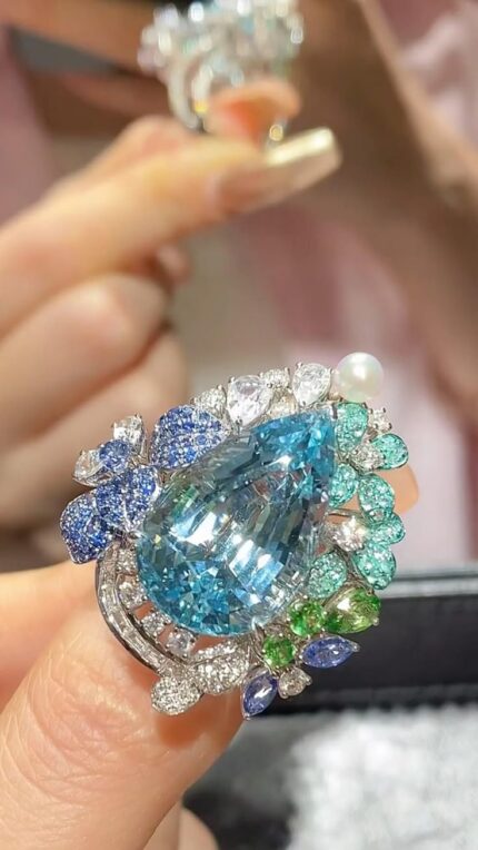 Soothing Sky-Blue  Floral Aquamarine Statement Ring