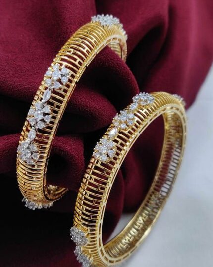 D&J Floral Diamond Gold Bangles – Classic Luxury Wedding Pair