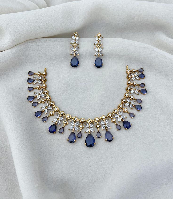 Royal Blue Teardrop Floral Diamond Necklace Set – D&J Diamonds & Jewels